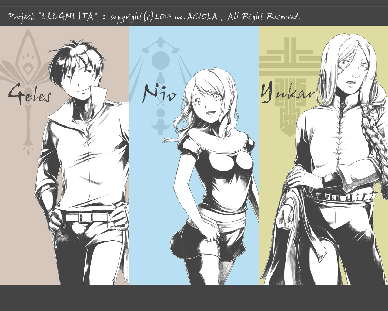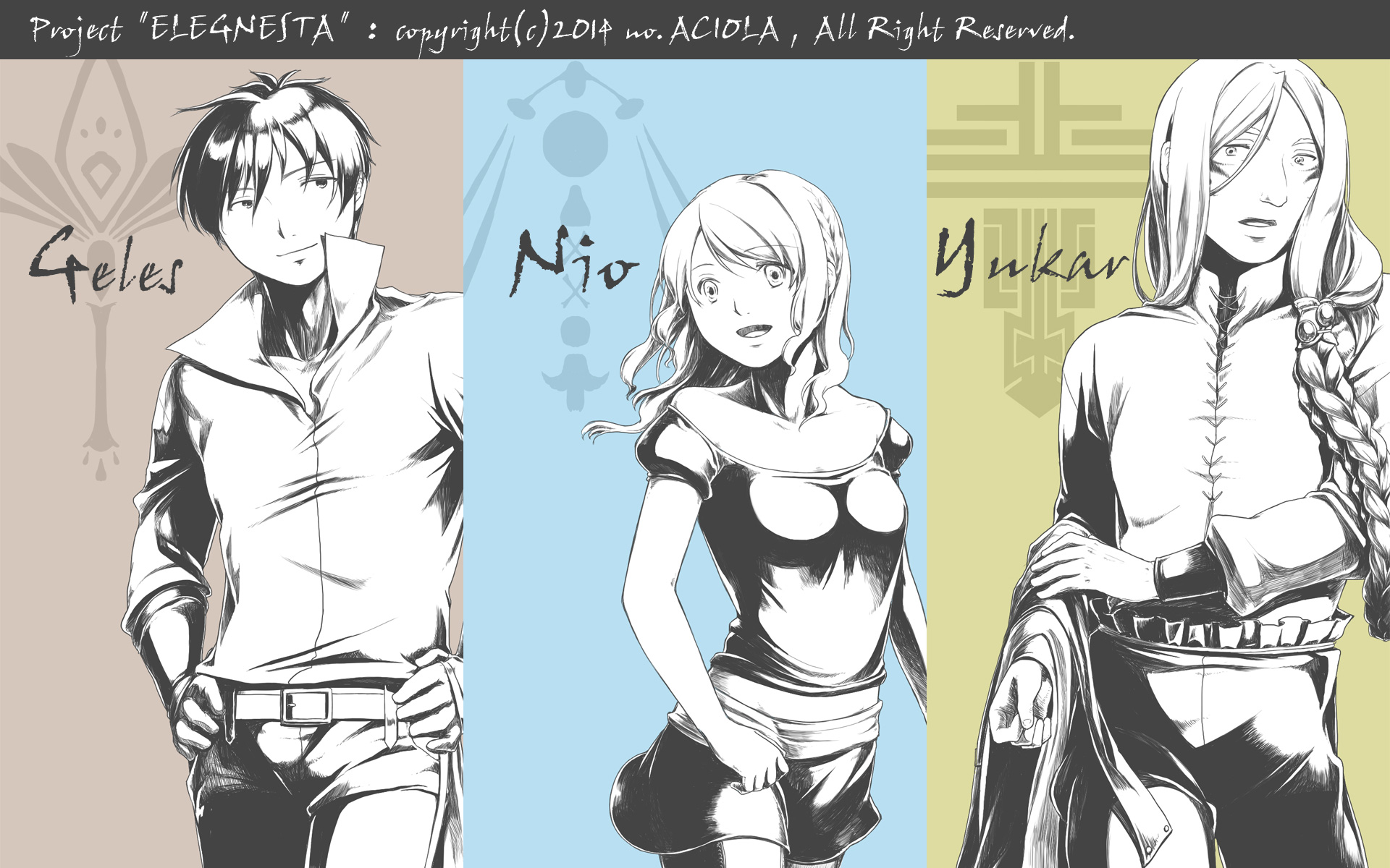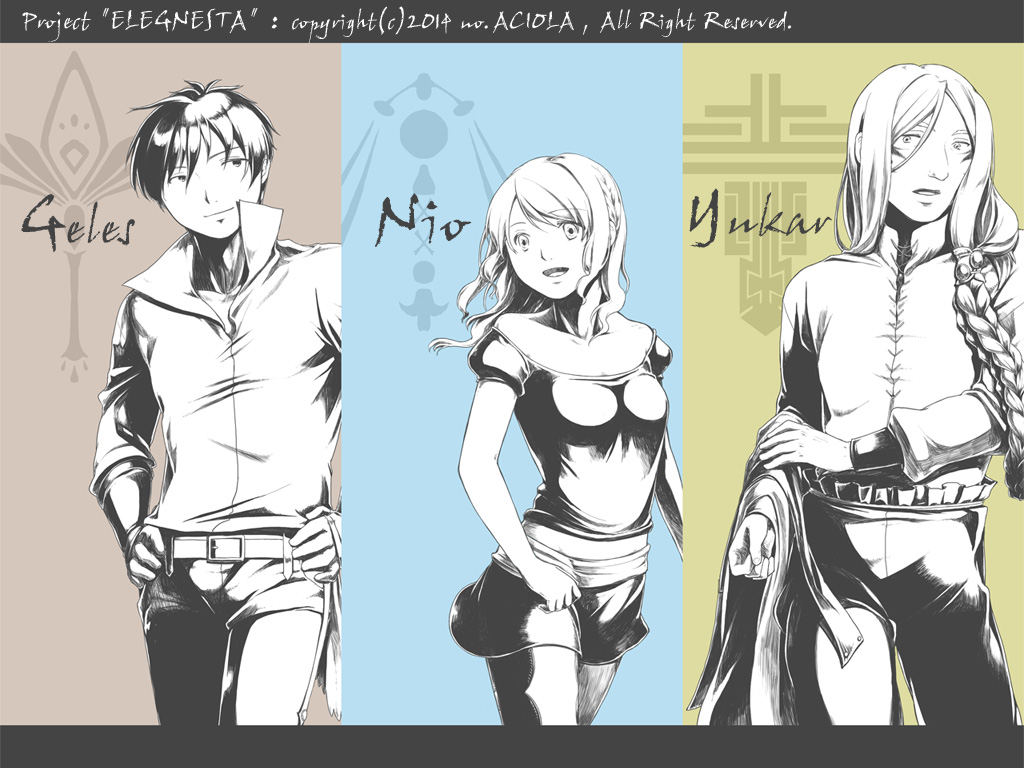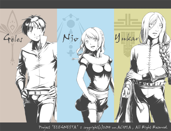 左からジェレス・ニオ・ユカルと言います。因みに名前に深い意味はなくてけっこう五感で決めてます。どういう五感の決め方したのかというと左から「ハーレクインに出てきそう」「短くて女の子だけど末尾が"オ"になる名前が良い」「ちょっと変わったやつ」です。ちょっと変わったやつはあだ名状態なので本名はもう三文字ほど長くなります。
