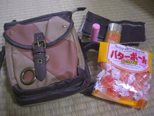 疲れるのでバター飴、リップクリームと日焼け止めと財布。