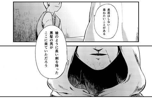 冒頭のフードの人のシーンとか、ジジイとのやり取りとかでけっこうかさばるので、2~30Pで前後編に分けようかなと思っていた時期もありました。