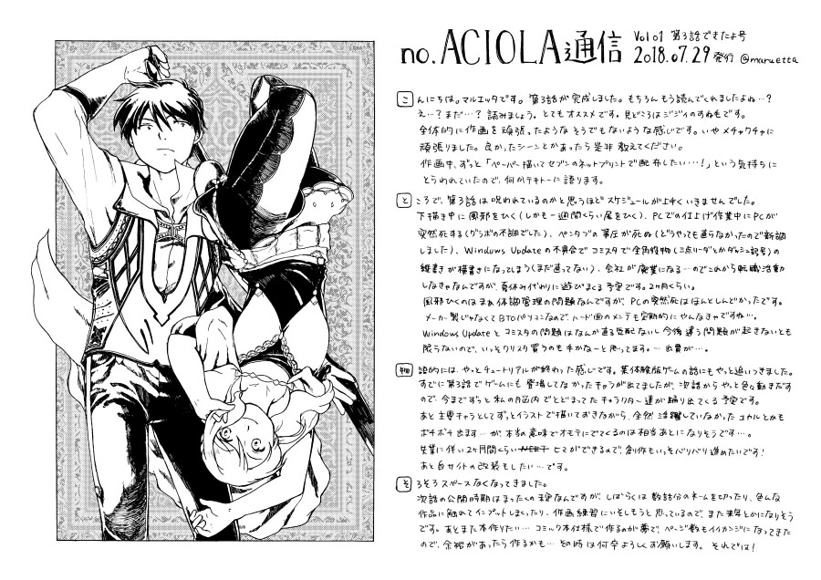 第三話、話としてはナゾだけ蓄積してる感じなので、なんともコメントし難いと思うんですが、感想など送っていただけたらとても励みになります。なにか思うところがありましたらコメント欄や拍手、メール(no.aciola◎gmail.com ◎→@)、マシュマロ、、、など色々あるので、お気軽にご利用ください。